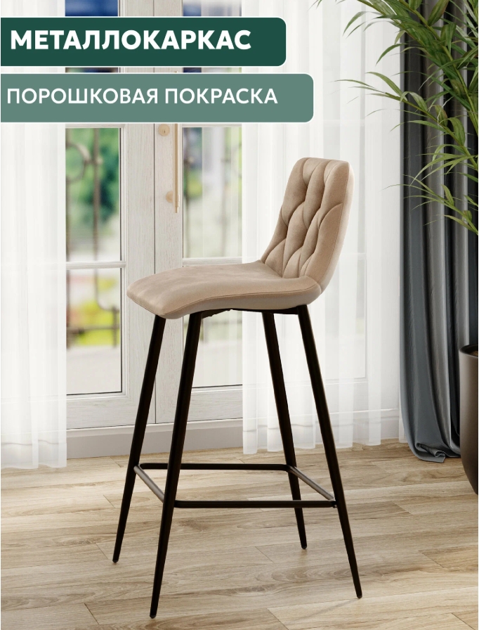 ССтул барный BC-2103 (каркас черный тк.бежевый/ Velvet HLR-7)